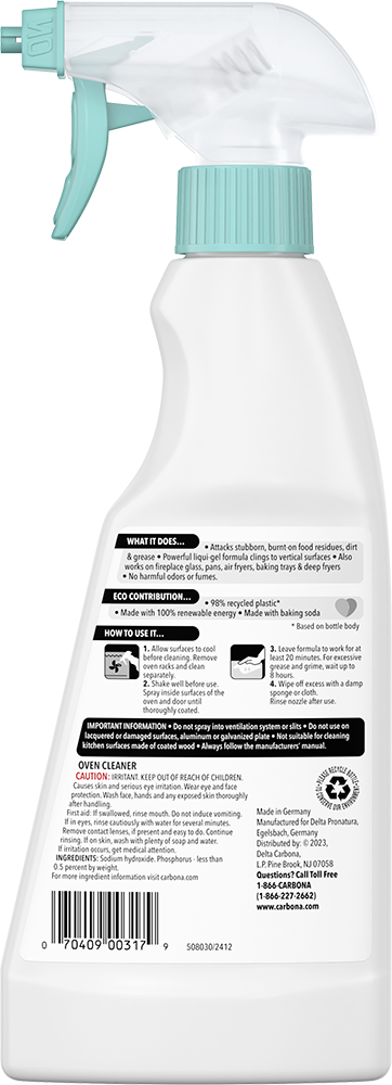 - Ideal For Spot or Deep Cleaning: Use for quick clean-ups or allow up to 40 minutes for heavy-duty grease. For racks, use Carbona Oven Rack & Grill Cleaner.
