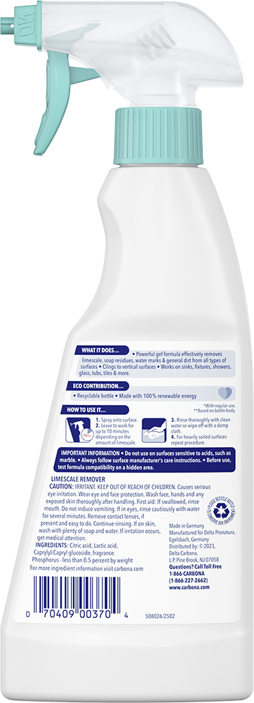 - Powerful gel formula effectively removes limescale, soap residues, water marks & general dirt from all types of surfaces