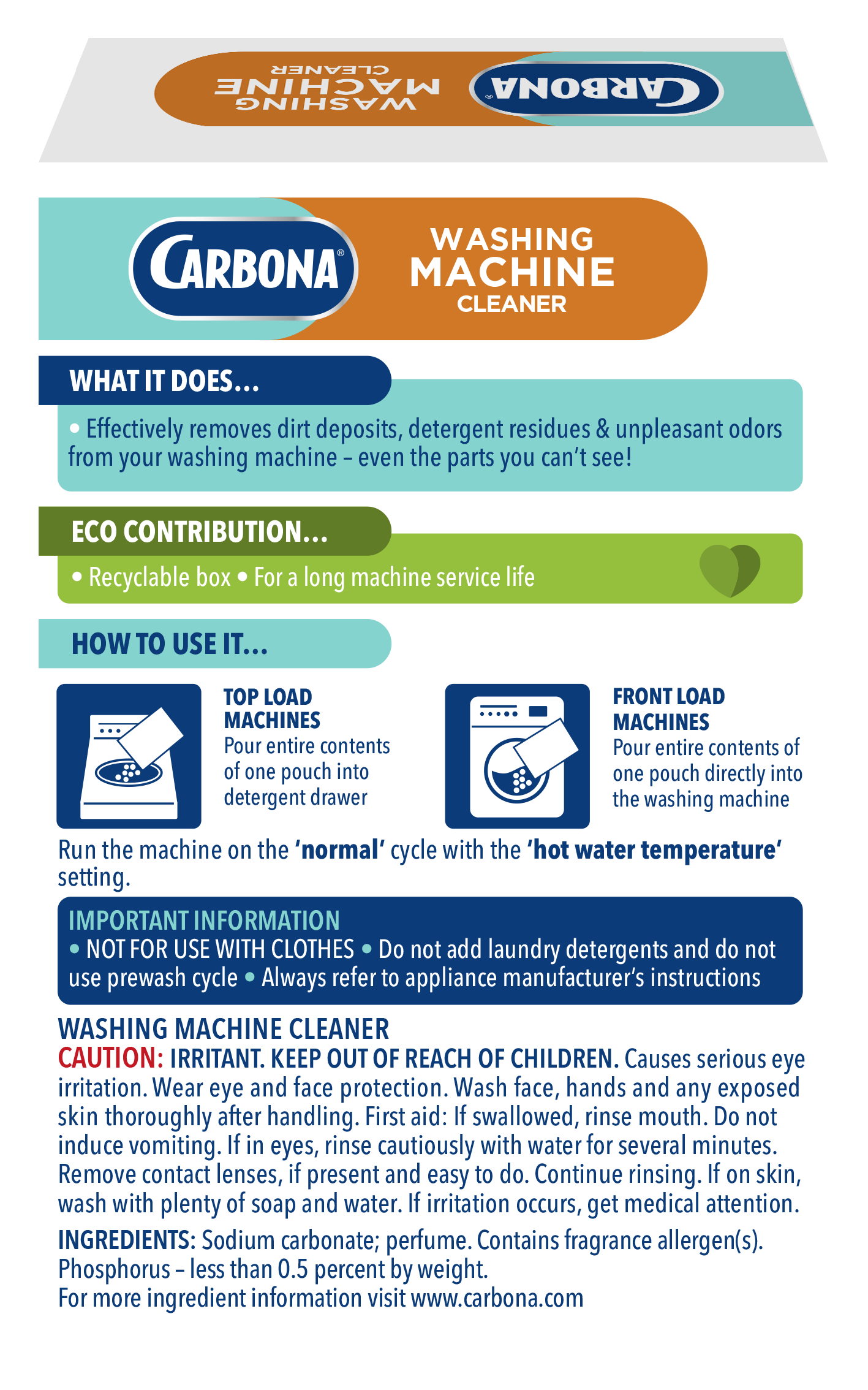 Effectively removes dirt deposits, detergent residues & unpleasant odors from your washing machine - even the parts you can not see.
